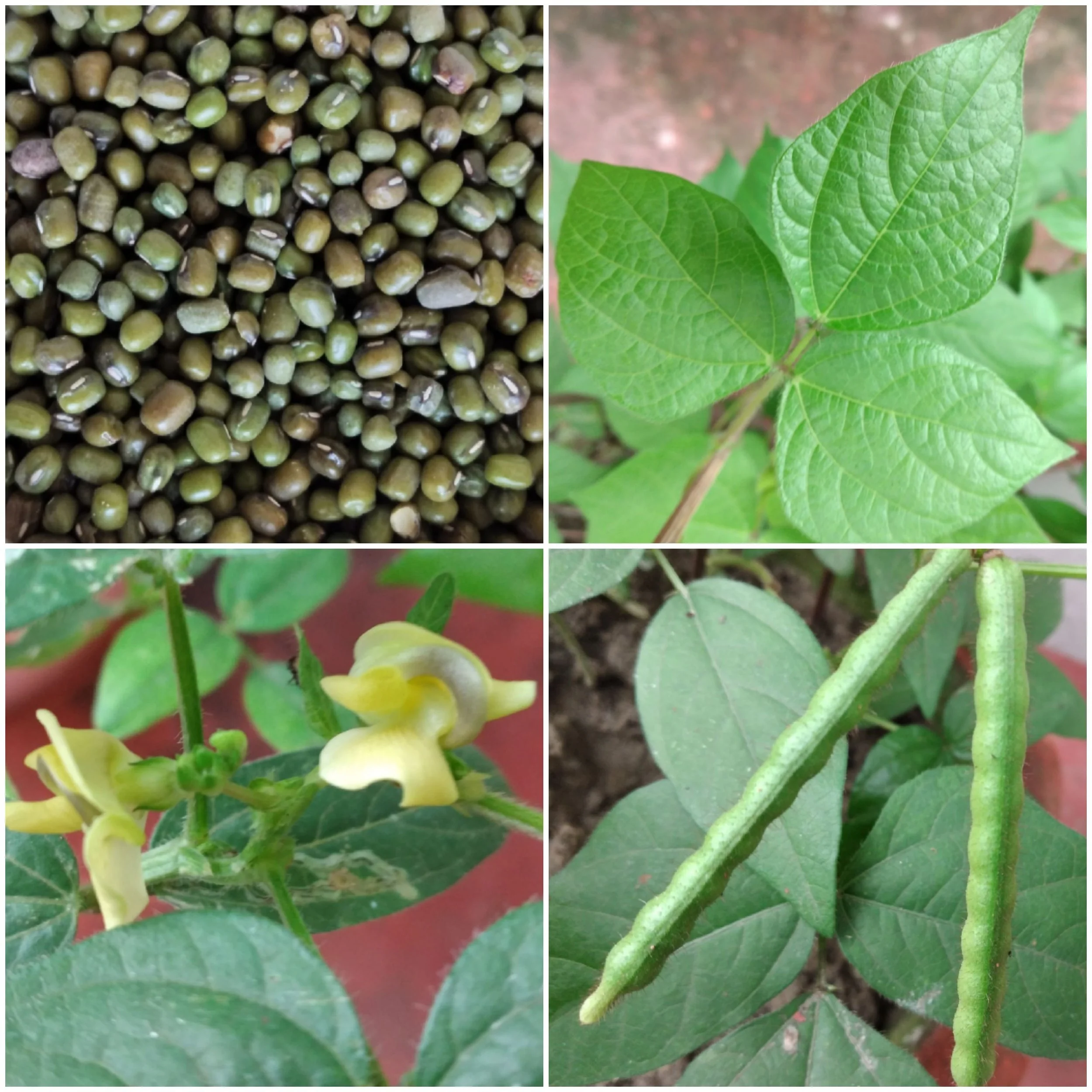 A month after sowing the seeds, yellow flowers produce tiny green pods that become green gram. Ammamma would say you must find good-quality seeds first, but Amma just bought them ready-made at the store.